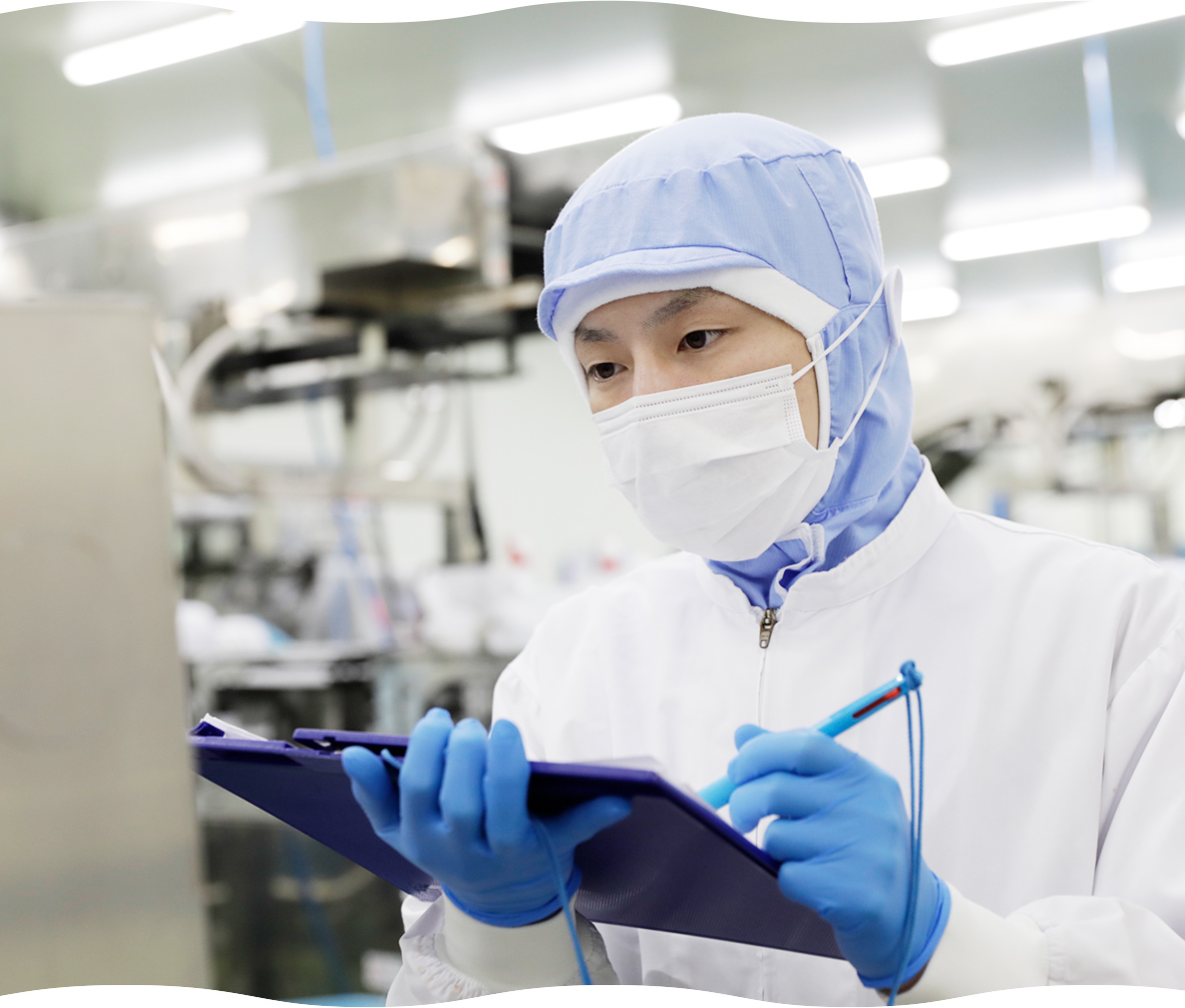 工場内の衛生状態を確認する日々の巡回・点検と、お客様へ提供する商品の安全管理が品質管理室の仕事です。巡回・点検ではお客様の目線に立ち、野菜の鮮度や工場内の清掃が隅々まで行き届いているかをチェック。食品工場の三大クレームとなる異物混入・食中毒・表示義務違反に細心の注意を払いながら、どんな細かな事象でも発見と迅速な情報共有を心がけています。